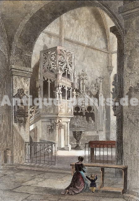 Allemagne. Gravure sur acier, gravée par J. Gray d´après C. Laeisz. ca 1855. Très bon état. Bordure décorative. Aquarellée à la main. 17x11,5cm. Montée sous passe-partout.