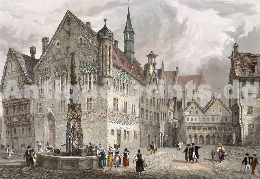 Genre. Original steel engraving, engraved by A. H. Payne after Girardet. ca 1850. Very good condition. Hand coloured. 16,5x12,5cm. Matted.