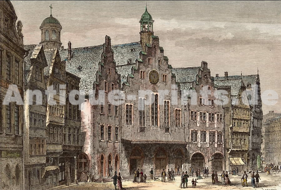 Deutschland. Stahlstich von A. H. Payne nach Breckmann. 1851. Kleiner Fleck im Himmel. Handkoloriert. 16x10,5cm. Mit Passepartout.