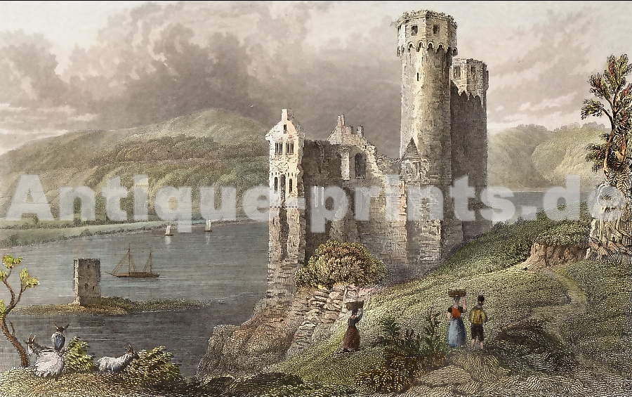 Ireland. Original steel engraving. 1863. Very good condition. Hand-coloured. 15x10cm. Matted.