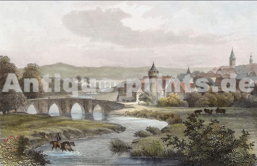 France. Original steel engraving drawn by C. Stanfield, engraved by R. Wallis. 1834. Good condition. Hand-coloured. 13,8x9,5cm. Matted.