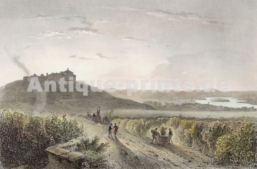 Germany, Allemagne, Deutschland, Rhein, Rhine, Engraving, Stich, Gravure, Schloss Johannisberg, Castle Johannisberg,