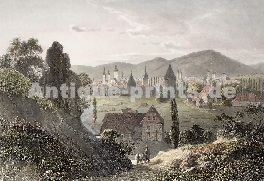 Deutschland. Stahlstich von C. Hunkler nach L. Rohbock. 1858. Guter Zustand. Handkoloriert. 18x12cm. Mit Passepartout.