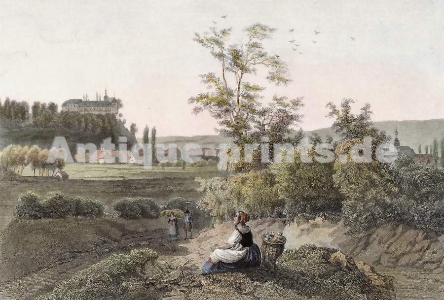 England. Original steel engraving drawn by W. H. Bartlett, engraved by C. Mottram. 1832. Soiled in the lower margin. Hand-coloured. 13x11,5cm. Matted.