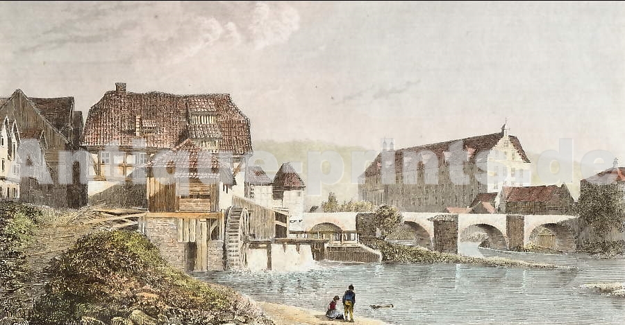 Ancient Egypt. Original steel engraving, engraved by H. Winkles after G. Heck. 1849. No title on the plate. Very good condition. Hand-coloured. 25x20cm. Matted.