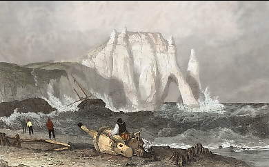 France, Gravure, Plates, Engraving, Stiche, Etretat, Frankreich, Francia