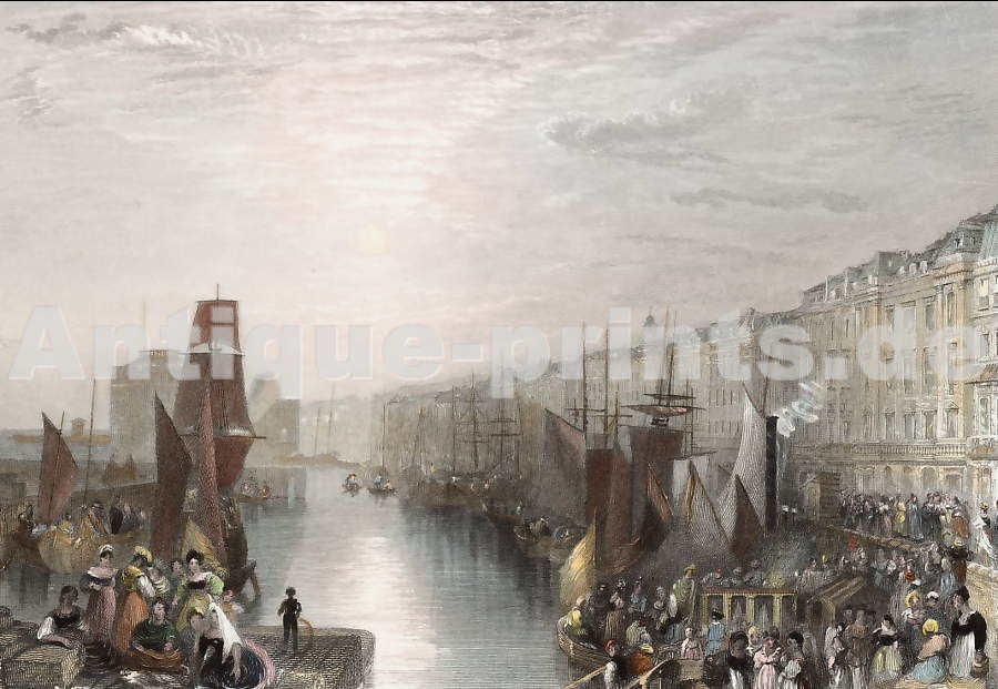 France. Lithographie par C. Motte d´après A. Drulin. 1830. Rousseur dans le ciel. Sur chine appliqué. Aquarellée à la main. 26,5x18cm.