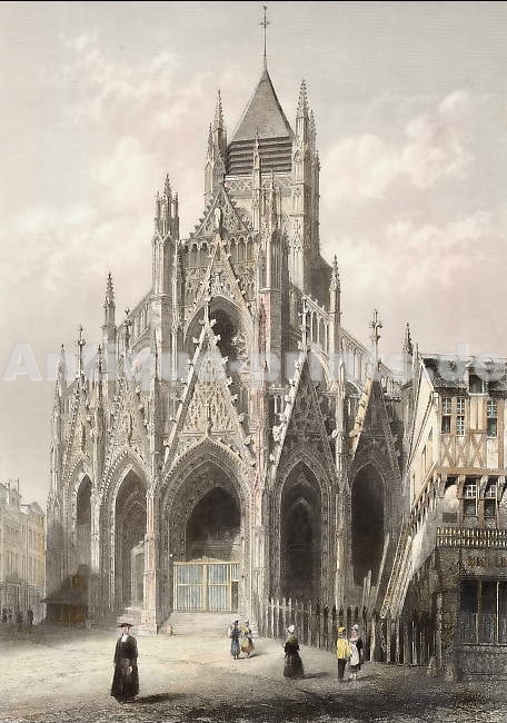 France. Original steel engraving drawn by Samuel Prout, engraved by W. Wallis. nd. Good condition. Hand-coloured. 14,5x9,5cm. Matted.