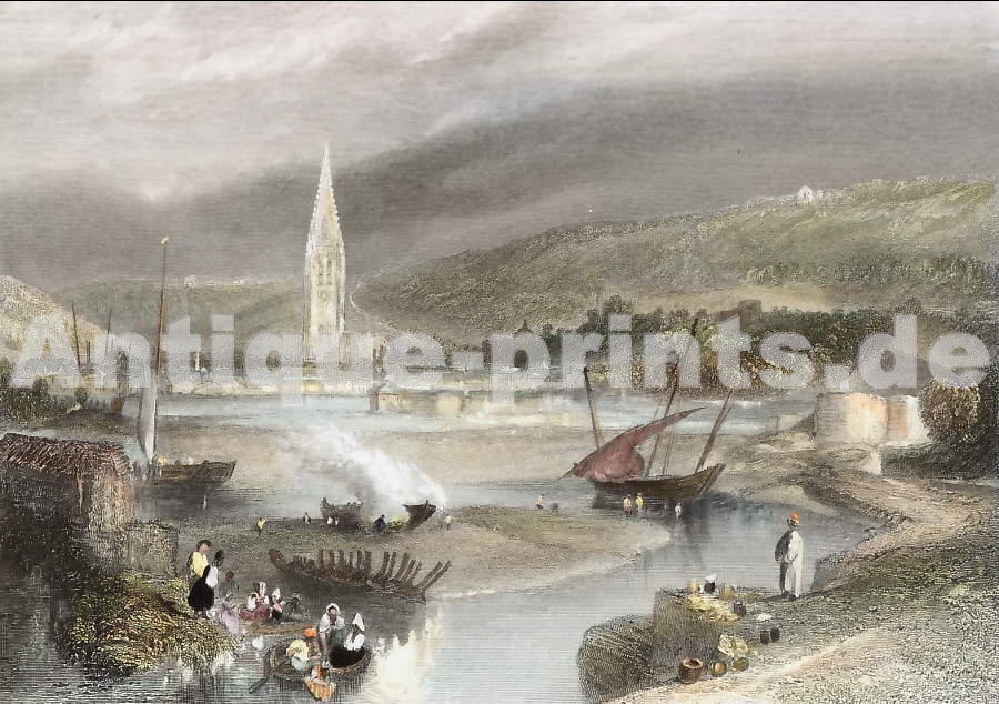 Angleterre. Gravure sur acier, gravée par W. H. Mote d´après A. E. Chalon. 1839. Très bon état. Aquarellée à la main. 15x12cm. Montée sous passe-partout.