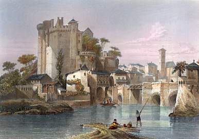 France. Original steel engraving. ca 1845. Very good condition. Hand-coloured. 8,5x6cm. Mounted.