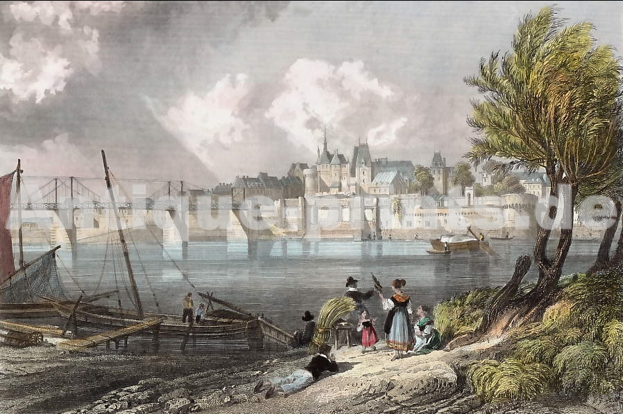 France, Loire, Ancenis, Gravure, Engraving, Stiche, Frankreich, Francia