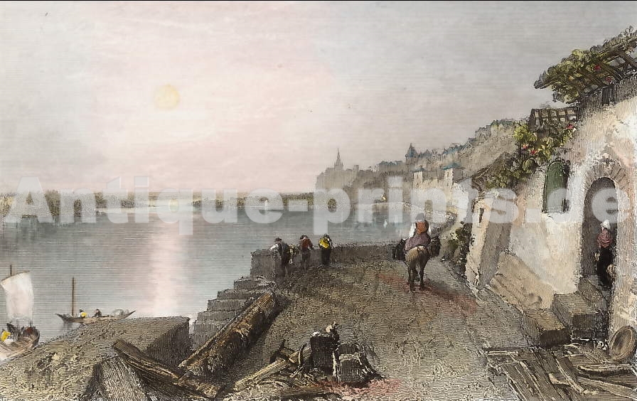 Italie. Gravure sur acier, gravée par E. Willmann. 1876. Très bon état. Aquarellée à la main. 15,5x10,5cm. Montée sous passe-partout.