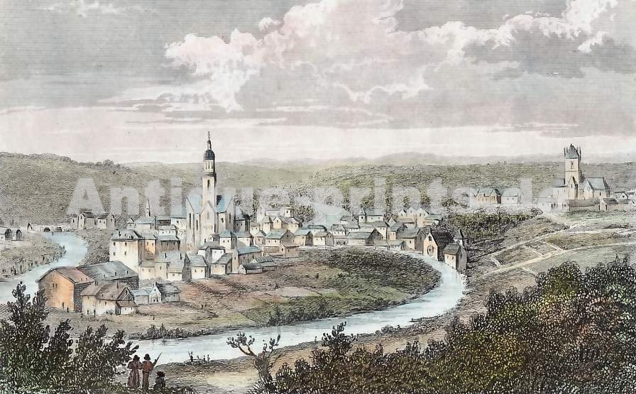 Germany. Original wood engraving by Barbant. 1878. Printed on the reverse side. Good condition. Hand-coloured. 13,2x11cm. Matted.