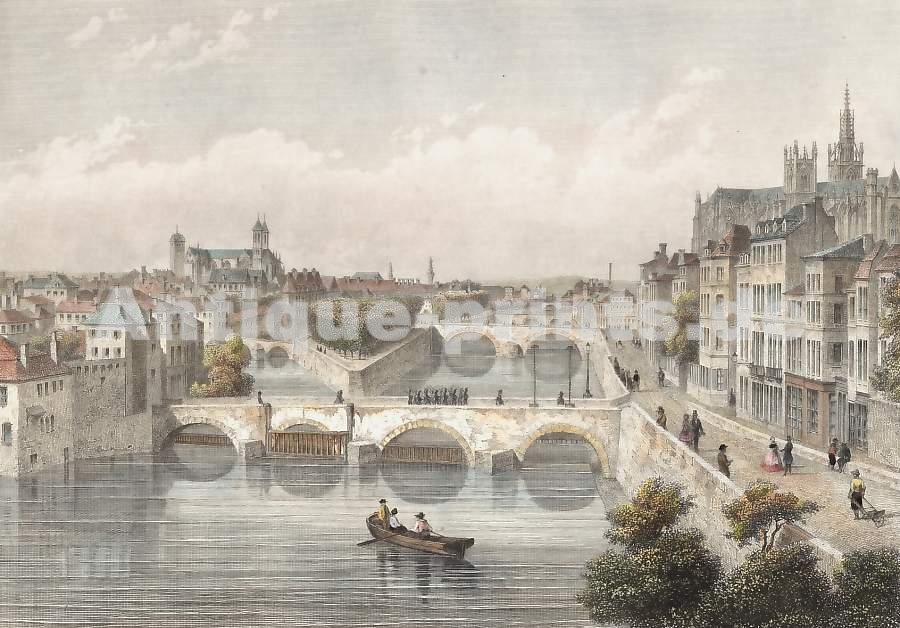 France. Gravure sur acier gravée par Desaulx d´après Buttura. 1835. Légères rousseurs dans les marges. Aquarellée à la main. 15,5x10,5cm. Montée sous passe-partout.