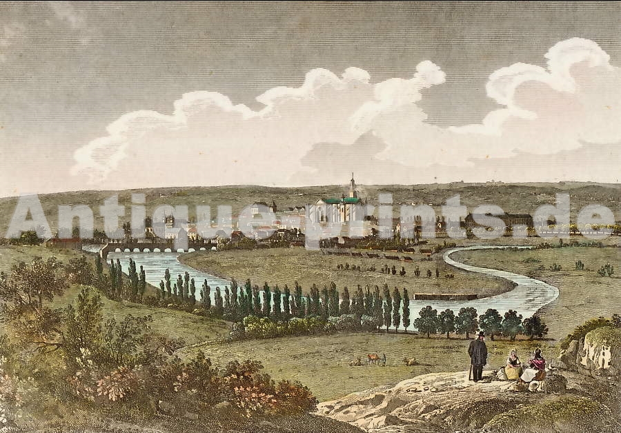 France. Original steel engraving drawn by R. Höfle, engraved by J. M. Kolb. 1847. Very good condition. Modern hand-colouring. 14,5x10,5cm. Matted.