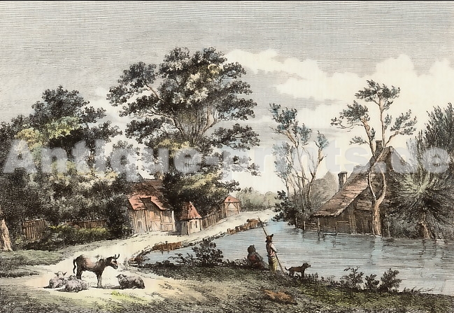 Chasse. Gravure sur acier, gravée par J. H. Engleheart d´après J. Bateman. 1841. Bon état. Aquarellée à la main. 13x10cm. Montée sous passe-partout.