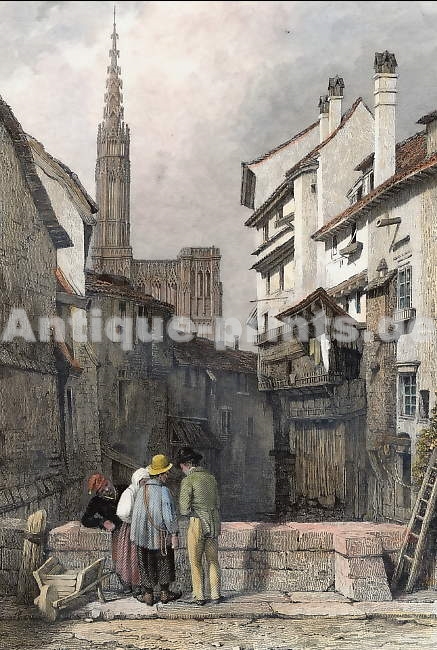 Egypt. Original wood engraving drawn by A. de Bar, engraved by Sargent. Printed on the reverse side. 1882. Very good condition. Hand-coloured. 24x16cm. Matted.