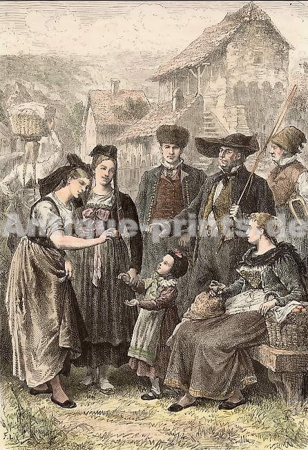 Germany. Original steel engraving. ca 1850. Good condition. Hand-coloured. 16,5x11,5cm. Matted.