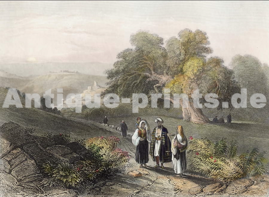Aegypten. Stahlstich von J. Cousen nach W. H. Bartlett. 1847. Leicht stockfleckig in den Rändern. Handkoloriert. 19,5x12,5cm. Mit Passepartout.