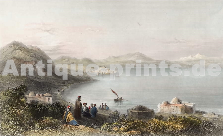 Holy Land. Original steel engraving drawn by W. H. Bartlett, engraved by E. Smith. 1837. Good condition. Hand-coloured. 18,5x12cm. Matted.