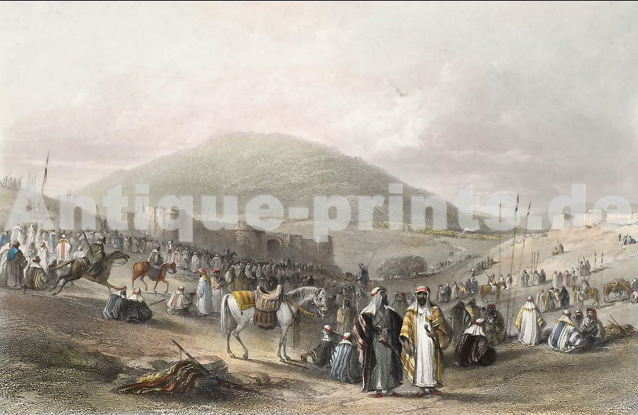 Holy Land. Original colour lithography drawn by J. M. Bernatz. 1855. Very good condition. Hand-coloured. 16,5x11,5cm. Matted.