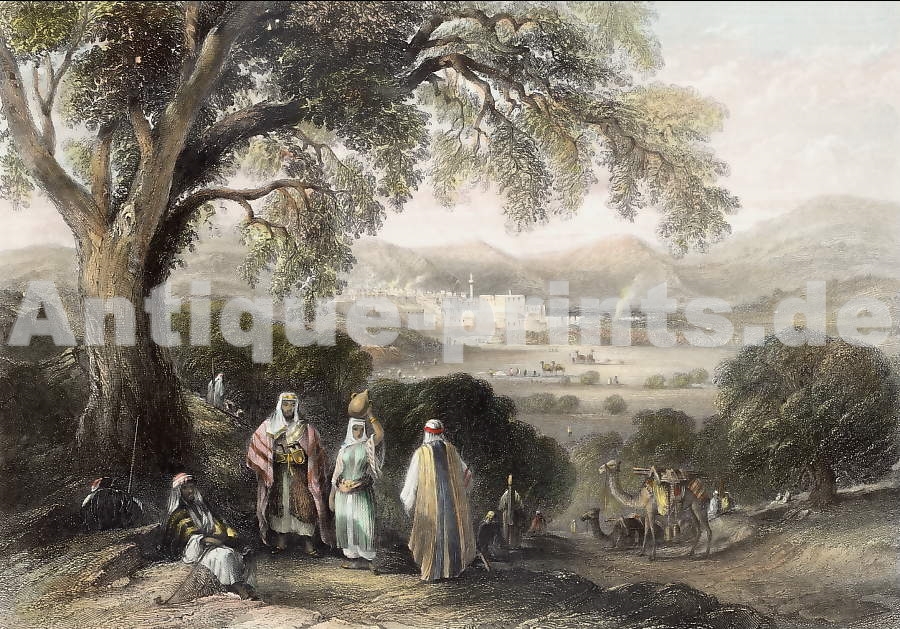 Arménie. Gravure sur bois, gravée par Pannemaker d´après E. Breton. 1846. Très bon état. Aquarellée à la main. 15,5x10cm. Montée sous passe-partout.