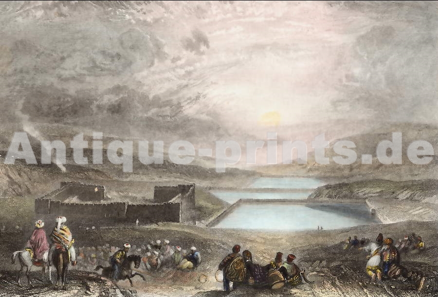 Terre Sainte. Lithographie teintée dessinée par J. M. Bernatz. 1855. Très bon état. Aquarellée à la main. 16,5x11cm. Montée sous passe-partout.