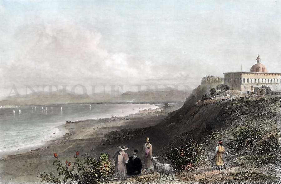 Terre Sainte. Gravure sur acier, gravée par E. J. Roberts d´après W. H. Bartlett. 1847. Très bon état. Aquarellée à la main. 20x13cm. Montée sous passe-partout.