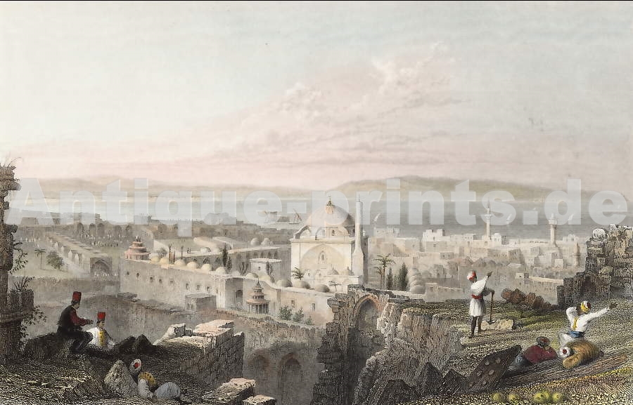 Terre sainte. Gravure sur acier, gravée par T. Barber d´après W. H. Bartlett. 1836. Très bon état. Aquarellée à la main. 18,5x12cm. Montée sous passe-partout.
