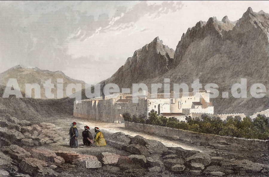 Grèce. Gravure sur acier, gravée par W. French d´après J. Schrader. 1853. Très bon état. Aquarellée à la main. 17,5x14cm. Montée sous passe-partout.