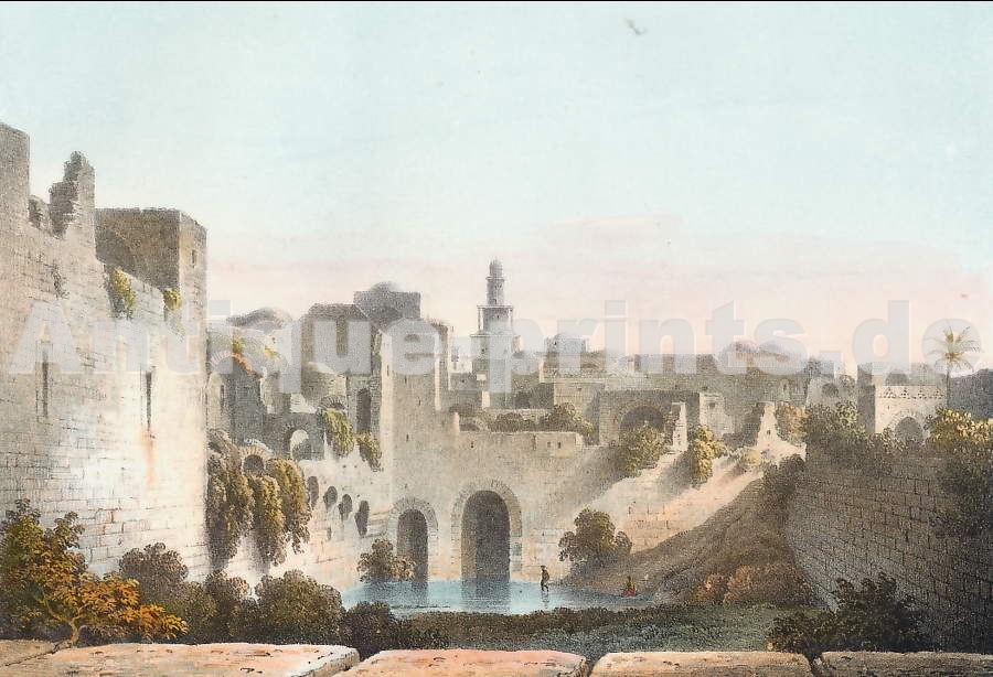 Terre sainte. Gravure sur acier, gravée par R. Brandard d´après W. H. Bartlett. 1847. Très bon état. Aquarellée à la main. 18x11,5cm. Montée sous passe-partout.