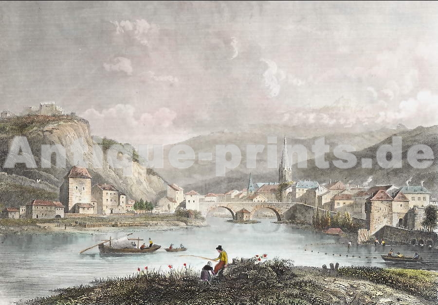 England. Original steel engraving drawn by W. H. Bartlett, engraved by H. Adlard. 1834. Very good condition. Hand-coloured. 15,5x10cm. Matted.