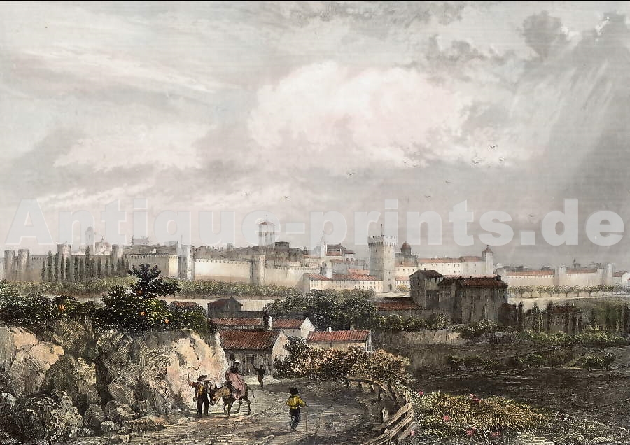 France. Gravure sur acier, gravée par W. H. Capone d´après W. H. Bartlett. 1836. Très bon état. Aquarellée à la main. 17x11cm. Montée sous passe-partout.