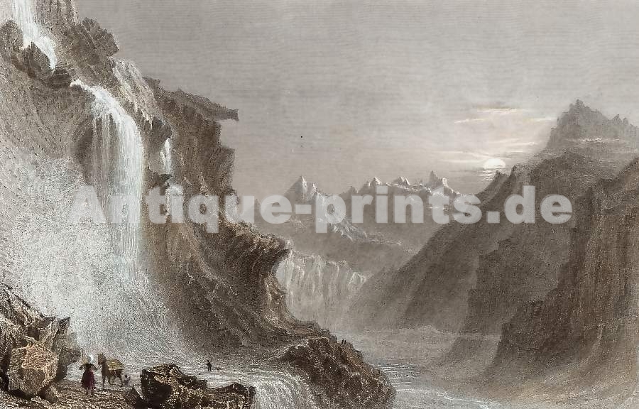 Original steel engraving drawn by J. Hollins, engraved by T,. Posselwhite. 1840. Very good condition. Hand-coloured. 18,5x 12cm. Matted.
