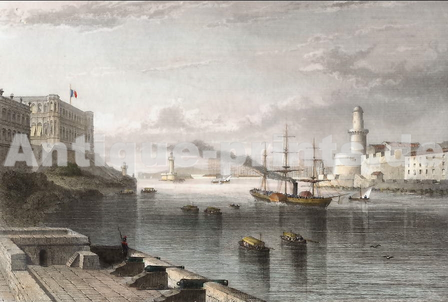 France. Gravure sur acier, gravée par E. Finden d´après J. D. Harding. 1872. Très bon état. Aquarellée à la main. 12x8cm. Montée sous passe-partout.