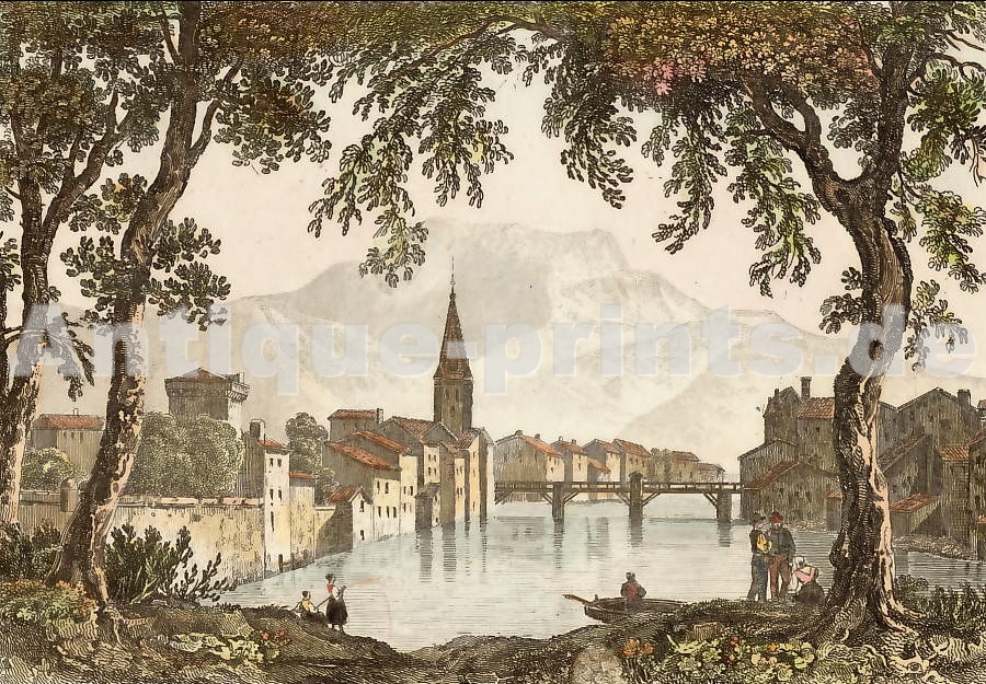 Pôles. Gravure sur acier. 1840. Très bon état. Aquarellée à la main. 14,5x9cm. Montée sous passe-partout.