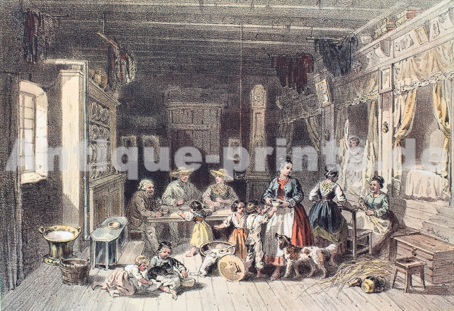 Italie. Gravure sur bois dessinée par L. Dill. 1874. Très bon état. Aquarellée à la main. 24,5x19cm. Montée sous passe-partout.