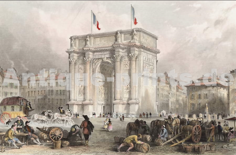 Europe. Original multiview steel engraving engraved by H. Winkles after G. Heck. 1849. No title on the plate. Very good condition. Hand-coloured. 25x20cm. Matted.