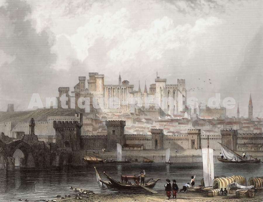 France. Original steel engraving, engraved by R. Wallis after J. M. W. Turner. 1837. Very good condition. Hand coloured. 14x9,5cm. Matted. .