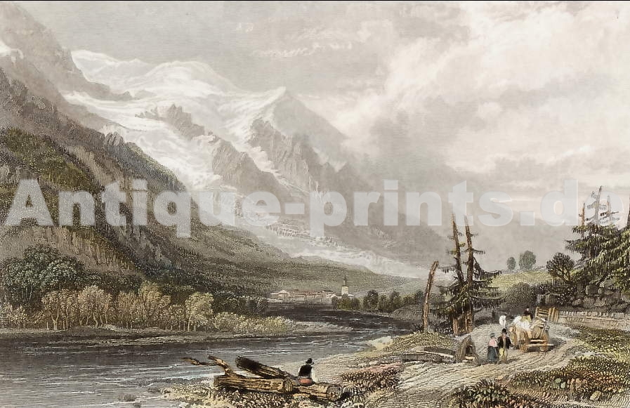 Netherlands. Original steel engraving drawn by W. H. Bartlett, engraved by A. H. Payne. 1837. Very good condition. Hand-coloured. 14,5x9,5cm. Matted.