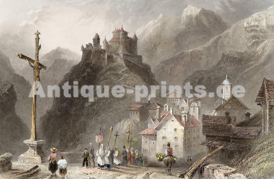 Italy. Original steel engraving, engraved by Scheffer after Pollet. 1840. Very good condition. Hand-coloured. 12,5x7cm. Matted.