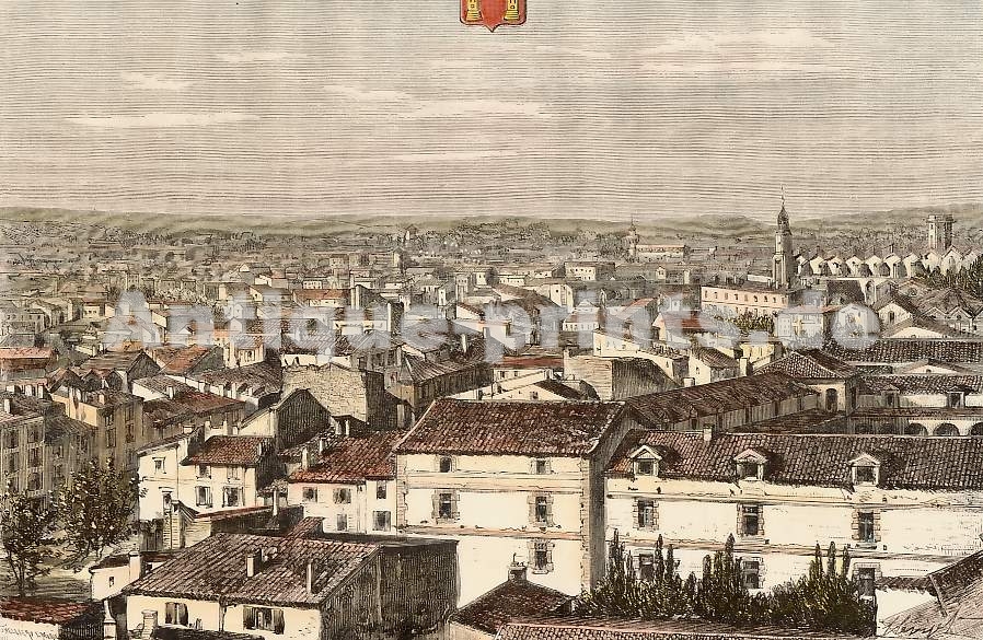 France. Gravure sur bois, gravée par F. Meyer. ca 1860. trés bon état. Aquarellage ancien. 19x12cm. Montée sous passe-partout.