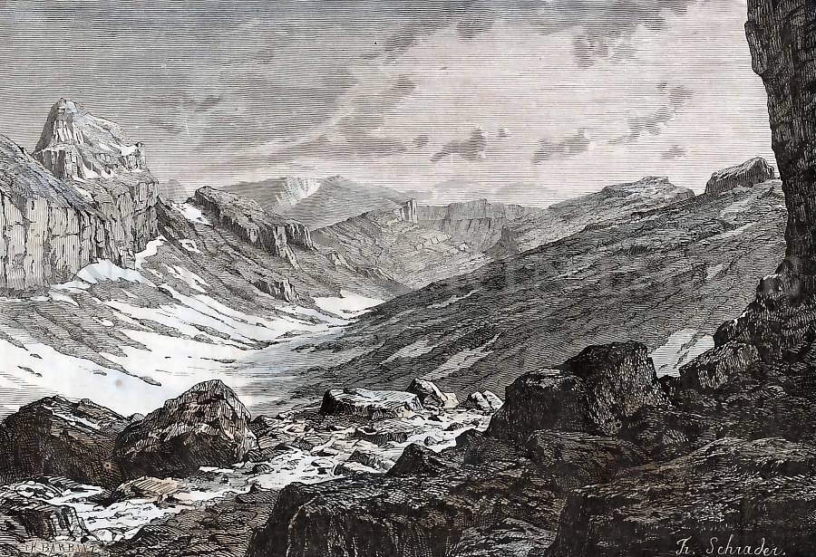 Varia. Gravure sur acier, gravée par T. Heawood d´après H. Bürckel. ca 1850. Petite marque dans le ciel. Aquarellée à la main. 16x10,5cm. Montée sous passe-partout.