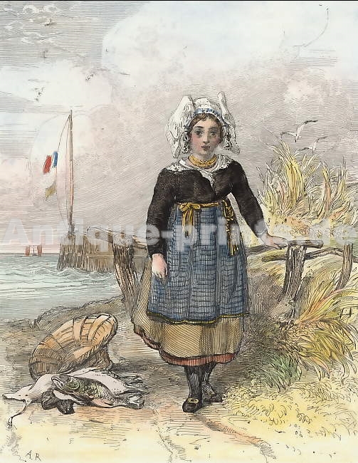 France. Original wood engraving, engraved by C. Laplante after T. Weber. 1876. Very good condition. Hand-coloured. 19x13cm. Matted.