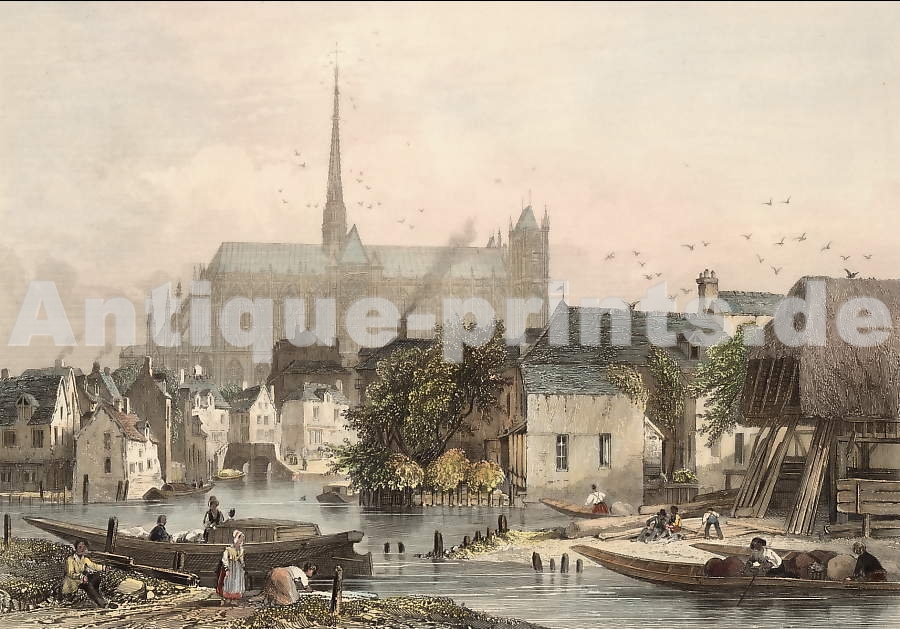 France. Original steel engraving drawn by Touboulie, engraved by Nyon. 1838. Very good condition. Hand-coloured. 12,5x7,5cm. Matted. .