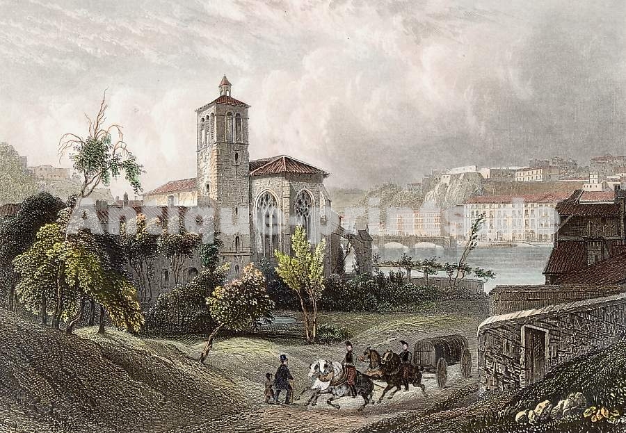 Original steel engraving. 1837. Very good condition. Modern hand-colouring. ca 9x9cm. Matted.