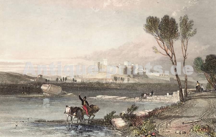 Holy Land. Original steel engraving drawn by Rouagrue, engraved by Outhwaite. 1852. Very good condition. Hand-coloured. 17x12cm. Matted.