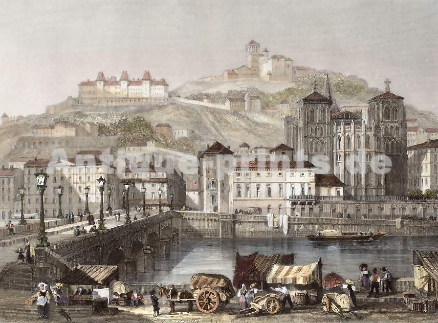 France. Original steel engraving drawn by J. D. Harding, engraved by J. H. Kernot. 1834. Very good condition. Hand-coloured. 14x10cm. Matted.