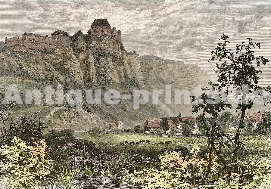 Austria. Original steel engraving, drawn by T. Allom, engraved by S. Lacey. 1835. Good condition. Hand-coloured. 15,5x9,5cm. Matted.
