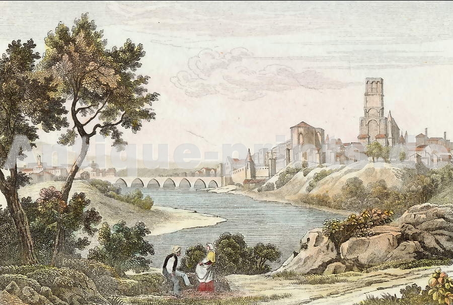 France. Gravure sur acier gravée par Couché et Desaulx d´après Civeton. 1835. Légères rousseurs. Aquarellée à la main. 16x11cm. Montée sous passe-partout.